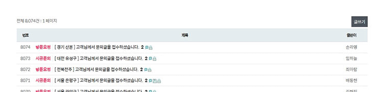 [양천구 목동] 고객님께서 문의글을 접수하셨습니다.